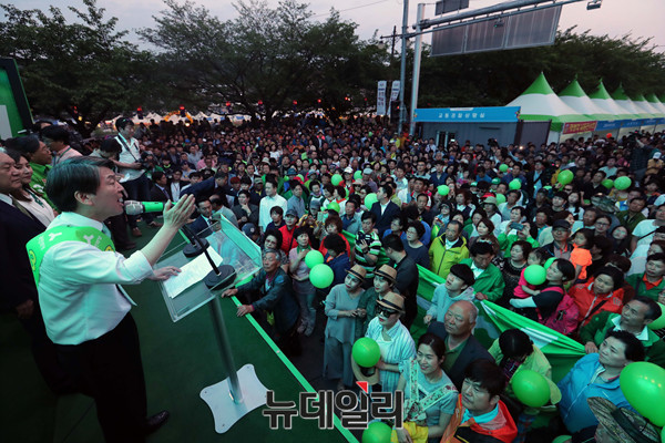 국민의당 안철수 대선후보가 3일 오후 전라북도 남원 춘향교 3거리 집중 유세에서 시민들에게 지지를 호소하고 있다. (전라북도 남원=뉴데일리 이종현 기자)