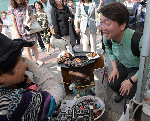 걸어서 국민 속으로' 도보 유세에 나선 국민의당 대선 안철수 후보가 4일 오후 대구광역시 동구 동대구역 인근에서 시민들과 만나고 있다. (대구=뉴데일리 이종현 기자)