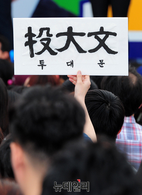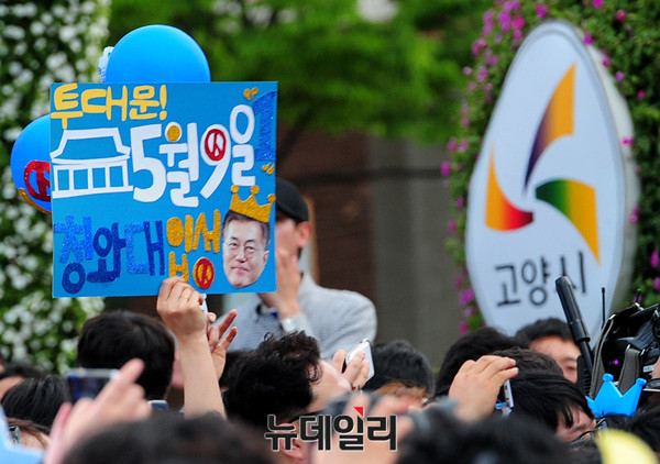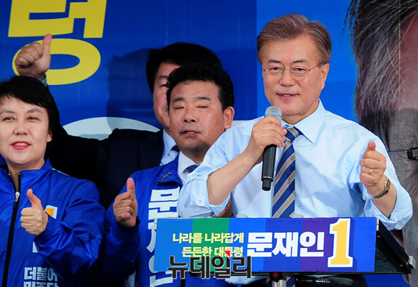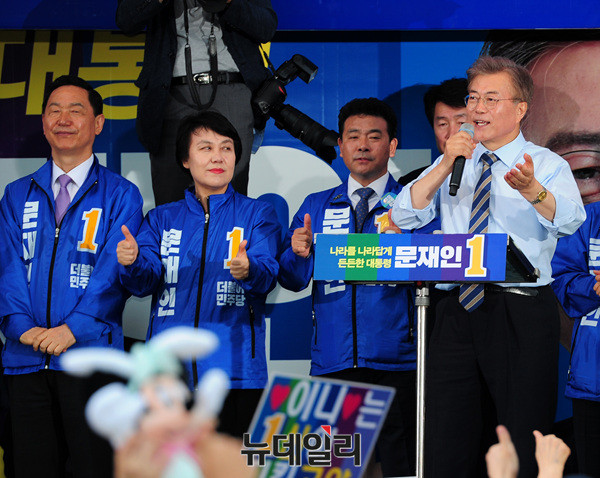 문재인 더불어민주당 대선후보가 4일 오후 경기도 고양시 일산 문화광장에서 유세를 하고 있다.