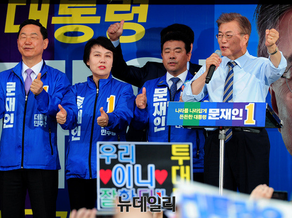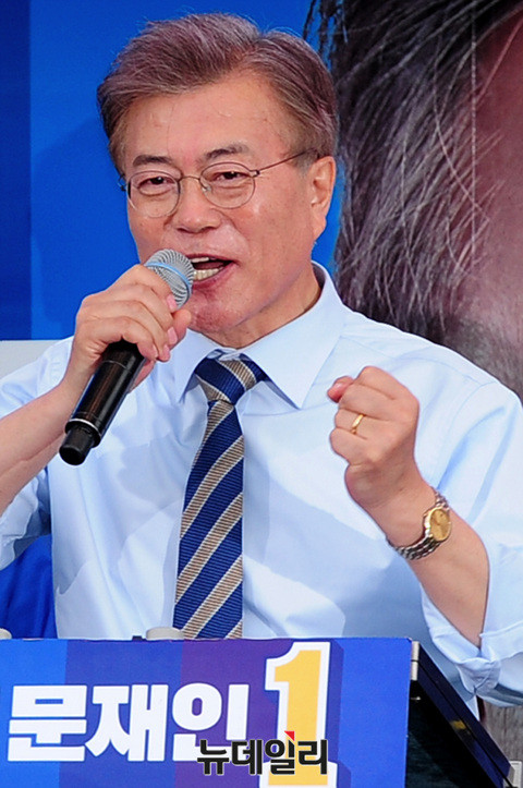 문재인 더불어민주당 대선후보가 4일 오후 경기도 고양시 일산 문화광장에서 발언하고 있다. 문 후보는 앞서 서울 코엑스 SM아티움에서 열린 '비상하라 한류문화콘텐츠 : 현장의 목소리를 듣다' 간담회에 참석해 문화인들과 한류 문화 발전 방안 등을 논의했다. (경기 고양=뉴데일리 공준표 기자)