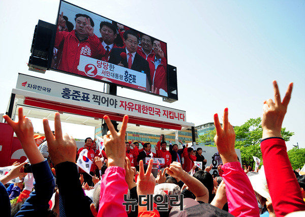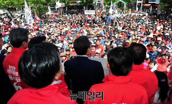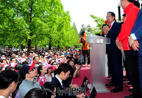 홍준표 자유한국당 대선후보가 6일 오전 경기도 고양시 일산 문화공원에서 유세하고 있다. 홍 후보는 앞서 여의도 중앙당사에서 국민대결집 대국민호소 기자회견을 가졌다. 이어 경기 부천 마루광장, 인천 월미도 문화의거리, 안산 상록수역, 충남 공주대학교에서 유세에 나설 예정이다. (경기 고양=뉴데일리 공준표 기자)