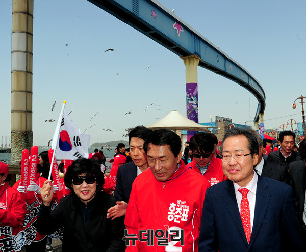 홍준표 자유한국당 대선후보가 6일 오후 인천 월미도 문화의거리에 유세를 위해 입장하고 있다. 홍 후보는 앞서 여의도 중앙당사에서 국민대결집 대국민호소 기자회견을 가진 후 경기 고양, 부천을 방문해 유세에 나섰다. 이어 경기 시흥, 안산 상록수역, 충남 공주대학교에서 유세에 나설 예정이다. (인천=뉴데일리 공준표 기자)