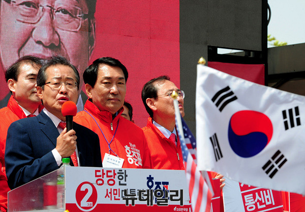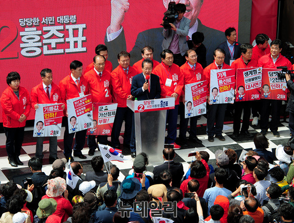 홍준표 자유한국당 대선후보가 6일 오후 인천 월미도 문화의거리에서 발언하고 있다. 홍 후보는 앞서 여의도 중앙당사에서 국민대결집 대국민호소 기자회견을 가진 후 경기 고양, 부천을 방문해 유세에 나섰다. 이어 경기 시흥, 안산 상록수역, 충남 공주대학교에서 유세에 나설 예정이다. (인천=뉴데일리 공준표 기자)