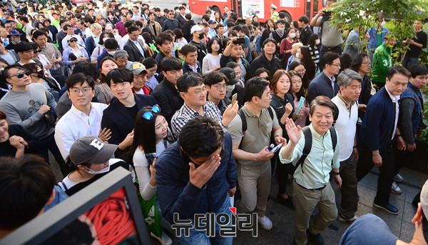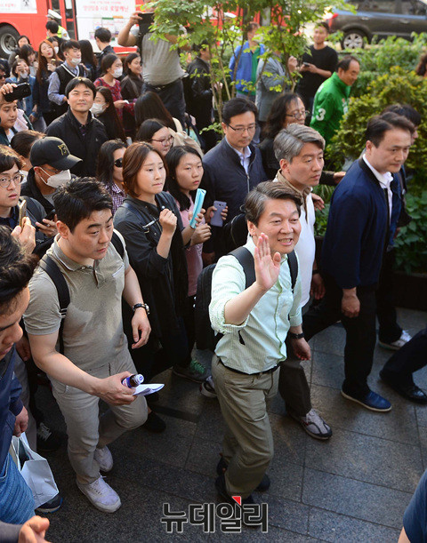 안철수 국민의당 대선후보가 7일 오후 강남역에 도착해 도보로 이동하고 있다. 안 후보는 앞서 강원도 강릉 산불 피해주민 대피소를 방문 후 잠실역에서 '걸어서 국민속으로' 도보유세를 시작했다. 이어 홍대입구역, 여의도 밤도깨비야시장, 신촌역, 서울역, 용산역, 동대문평화시장에서 유세를 이어갈 예정이다. (사진=공동취재단)