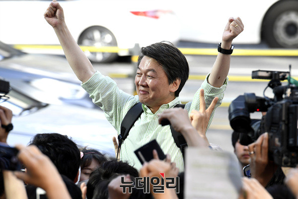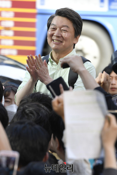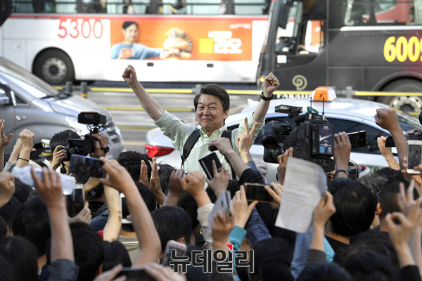 안철수 국민의당 대선후보가 7일 오후 강남역에서 만세를 하고 있다. 안 후보는 앞서 강원도 강릉 산불 피해주민 대피소를 방문 후 잠실역에서 '걸어서 국민속으로' 도보유세를 시작했다. 이어 홍대입구역, 여의도 밤도깨비야시장, 신촌역, 서울역, 용산역, 동대문평화시장에서 유세를 이어갈 예정이다. (사진=공동취재단)