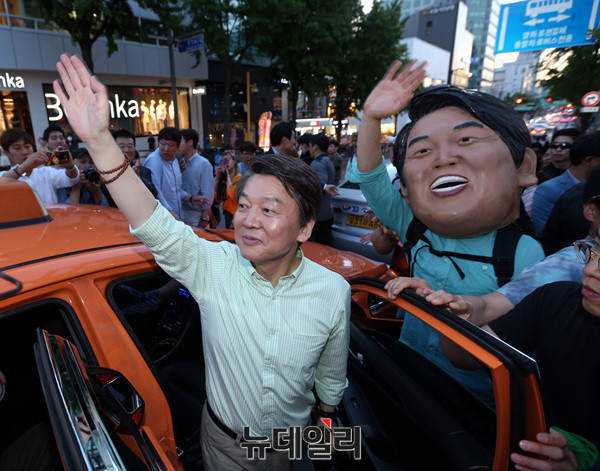 안철수 국민의당 대선후보가 7일 오후 서울 홍대입구역에서 여의도로 향하기 위해 택시를 타고 있다. 안 후보는 앞서 강원도 강릉 산불 피해주민 대피소를 방문했다. 이어 여의도 밤도깨비야시장, 신촌역, 서울역, 용산역, 동대문평화시장에서 도보유세를 이어갈 예정이다. (사진=공동취재단)