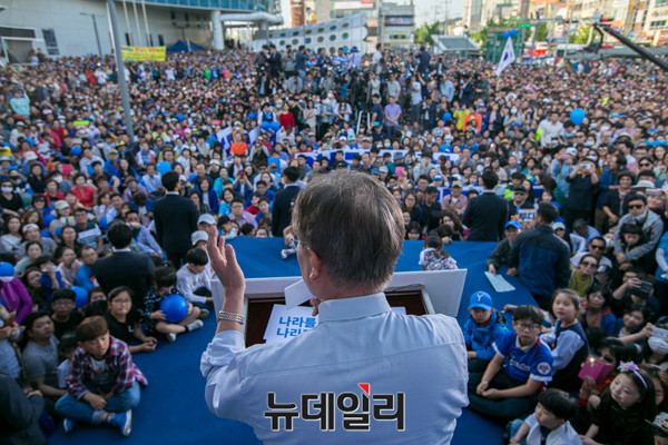 더불어민주당 문재인 대선후보가 7일 오후 광주송정역 광장에서 열린 집중유세에서 지지를 호소하고 있다.