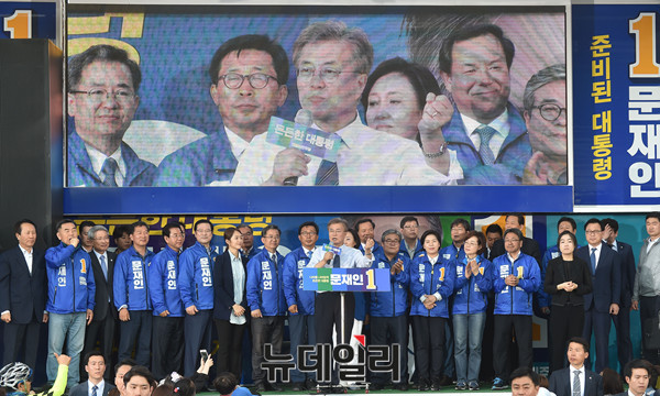 더불어민주당 문재인 대선후보가 7일 오후 광주송정역 광장에서 열린 집중유세에서 연설을 하고 있다. (광주=뉴데일리 이종현 기자)
