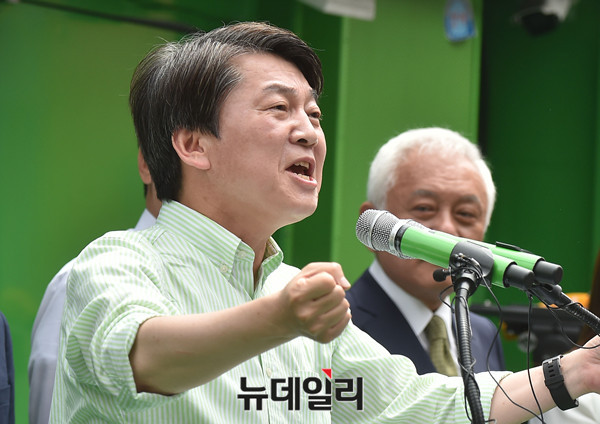 안철수 국민의당 대선후보가 19대 대선을 하루 앞둔 8일 오전 서울 광화문 세종문화회관 앞에서 열린 집중유세에서 지지를 호소하고 있다.