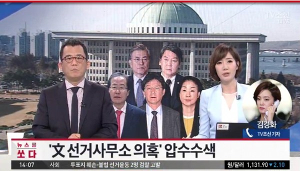 이와 관련 8일 <TV조선>에 따르면 이 사무실에는 문 후보 선거 벽보 포스터와 문 후보 명의의 선대위 임명장 수백 개가 존재했다. 이곳에는 직원들도 여러명이 일하는 것으로 확인됐다.