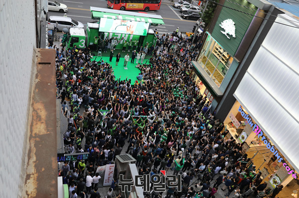 철수 국민의당 대선 후보가 8일 오후 대전광역시 동구 중앙대로 문화의 거리에서 열린 집중유세에서 지지를 호소하고 있다.