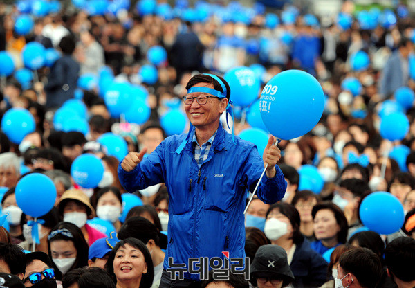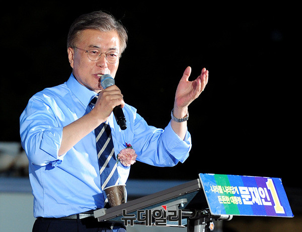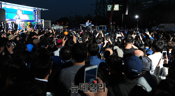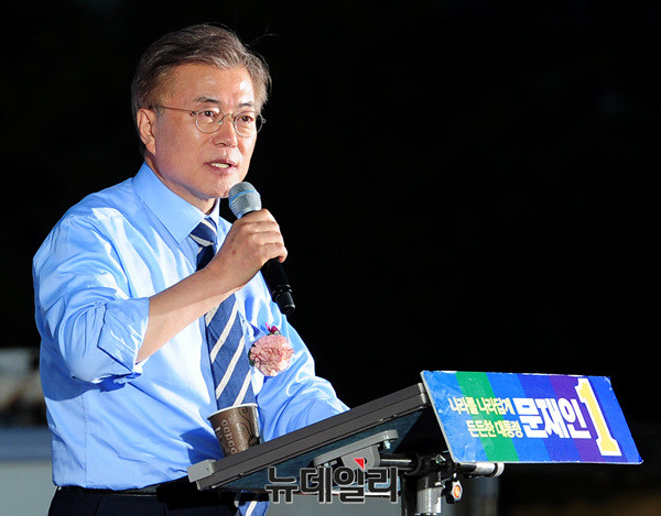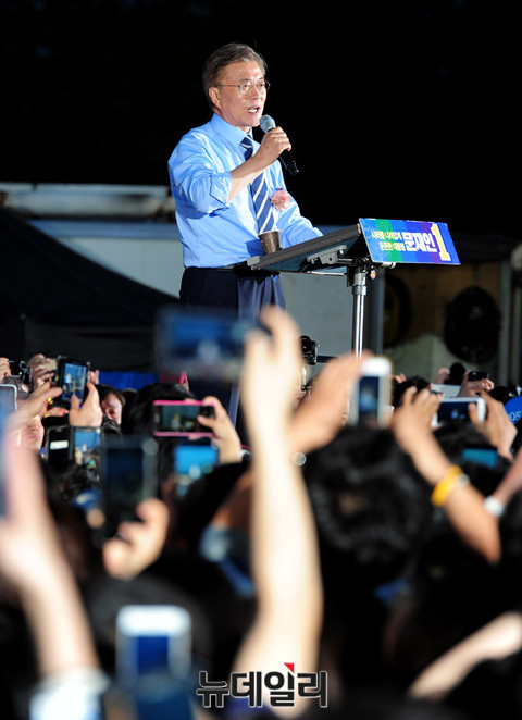문재인 더불어민주당 대선후보가 선거를 하루 앞둔 8일 오후 서울 광화문광장에서 유세를 하고 있다. 문 후보는 앞서 부산, 대구, 청주에서 유세를 가졌다.