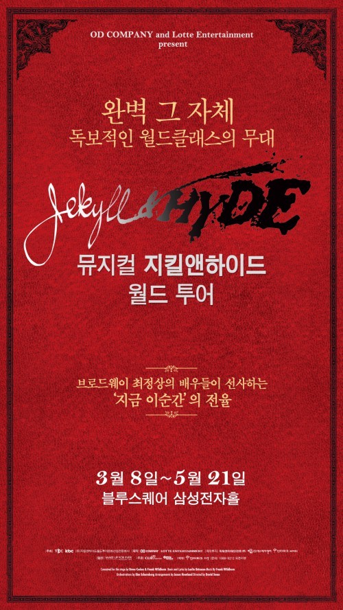 뮤지컬 '지킬앤하이드 월드 투어' 서울 공연이 단일 시즌 관객수 10만 명을 돌파했다.지난해 3월 뉴욕 현지 오디션을 진행한 '지킬앤하이드 월드 투어'는 12월 대구를 시작으로 국내 8개 도시에서 총 67회 공연됐다. 매 도시마다 80% 이상의 좌석 점유율을 기록하며 지방 공연 누적 관객수만 9만 명을 웃돌았다.올해 3월 서울 블루스퀘어 입성 후에도 매회 1200명, 매주 1만 명 이상의 관객들이 '지킬앤하이드 월드 투어'를 찾았다. 특히, 오는 21일 종연 시점의 전체 누적관객 수가 133만명에 달해 한국 뮤지컬 사상 최다 관람 수치를 기록할 전망이다.대부분의 라이선스 작품들이 해외 공연을 그대로 가져오는 레플리카 형식이라면 '지킬앤하이드'는 국내 제작진이 새롭게 기획·구성하는 논-레플리카 형식의 한국화가 가장 잘 된 뮤지컬이다.신춘수 프로듀서는 포화 상태에 다다른 뮤지컬 시장에서의 돌파구로 콘텐츠의 세계화를 제시하며 작품의 역수출을 도모했다. 앞서 '지킬앤하이드' 공연에 참여한 국내 창작진을 중심으로 브로드웨이 배우들을 기용해 월드 투어 프로덕션을 꾸렸다.기존의 국내 캐스트에 익숙한 관객들에게 낯설었던 카일 딘 매시, 다이애나 디가모, 린지 블리븐 등 브로드웨이 캐스트는 수준급 기량을 발산하며 국내 관객들의 눈과 귀를 완벽하게 사로잡았다.한편, '지킬앤하이드 월드 투어'는 종연을 앞두고 다양한 이벤트를 준비했다. 5월 10일부터 공연 예매 시 30% 굿바이 할인 혜택을 제공하며, 10일과 11일 양일간 주연 배우들과 함께 하는 스페셜 팬 사인회를 개최한다.