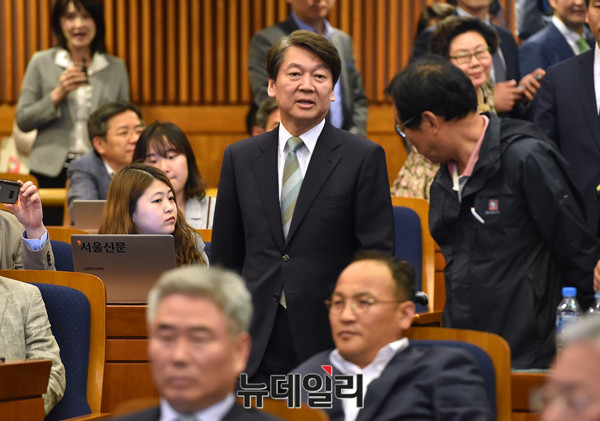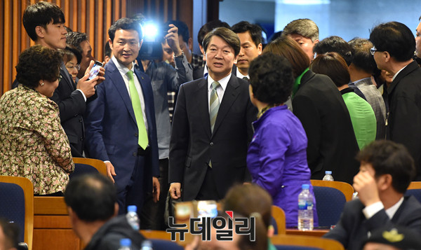 안철수 국민의당 대선후보가 9일 오후 국회 헌정기념관에 마련된 국민의당 선대위 개표상황실로 입장하고 있다.