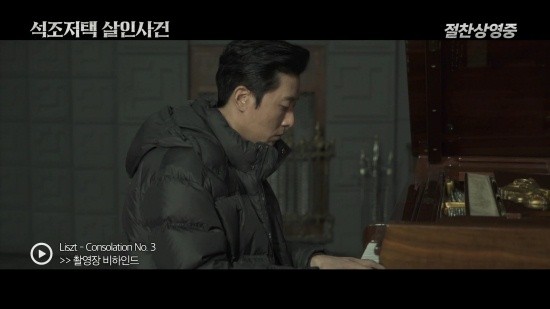 메이킹 영상 속 김주혁은 촬영 준비로 어수선한 상황 속에서도 피아노 연습에 몰두해 보는 이들의 감탄을 자아낸다. 이어지는 미공개 장면에선 김주혁이 연주하는 Liszt의 Consolation No.3의 감미로운 선율과 대비되는 팽팽한 긴장감이 돋보여, 영화에 대한 궁금증을 한껏 고조시킨다.