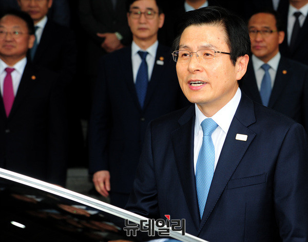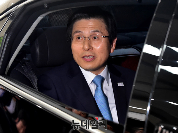 황교안 국무총리가 11일 오후 정부서울청사 별관에서 열린 이임식 직후 차량에 올라 청사를 떠나고 있다. 황 총리는 지난해 12월 박근혜 전 대통령에 대한 국회 탄핵소추안이 가결된 이후부터 문재인 대통령이 취임하기 전까지 대통령 권한대행을 맡아 국정을 운영해 왔다.