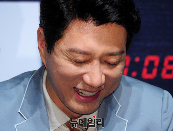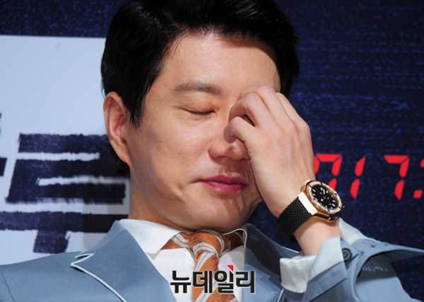 영화 '하루(감독 조선호)'에서 딸의 사고를 막기 위해 고군분투하는 아빠 준영 역을 맡은 배우 김명민이 12일 오전 압구정CGV에서 열린 제작보고회에 참석해 눈빛 연기를 보여주고 있다.