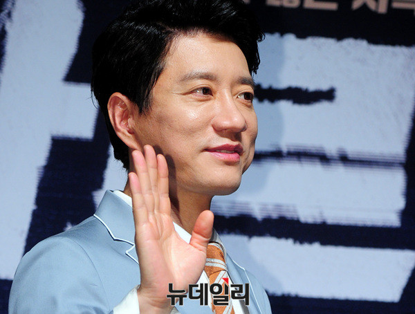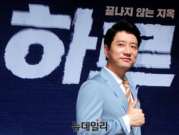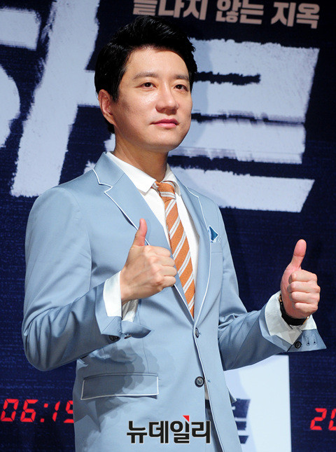 영화 '하루(감독 조선호)'에서 딸의 사고를 막기 위해 고군분투하는 아빠 준영 역을 맡은 배우 김명민이 12일 오전 압구정CGV에서 열린 제작보고회에 참석해 포토타임을 갖고 있다.