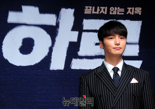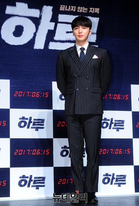 영화 '하루(감독 조선호)'에서 바뀌지 않는 시간에 갇혀 준영을 돕는 구급차 기사 민철 역을 맡은 배우 변요한이 12일 오전 압구정CGV에서 열린 제작보고회에 참석해 포토타임을 갖고 있다.