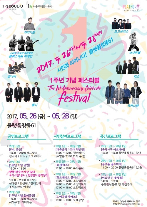 플랫폼창동61의 1주년 페스티벌에 대한 자세한 정보는 홈페이지(http://www.platform61.kr/)에서 확인할 수 있다.