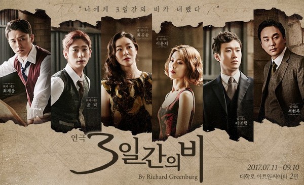 '3일간의 비'는 2003 토니상 수상자인 미국의 유명 극작가 리차드 그린버그의 작품으로, 줄리아 로버츠, 콜린 퍼스, 제임스 맥어보이 등 해외 톱배우들이 잇달아 출연해 화제를 모은 바 있다.