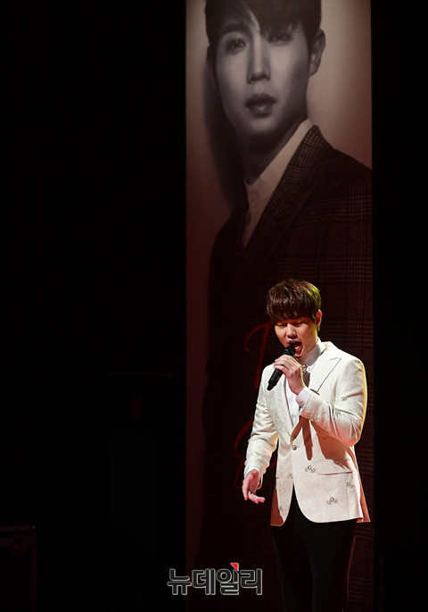 베이스 손태진, 가수 이벼리, 뮤지컬 배우 고훈정, 테너 김현수(왼쪽부터)로 구성된 '포르테 디 콰트로(Forte Di Quattro)'가 18일 오전 서울 강남구 일지아트홀에서 열린 미디어 쇼케이스에서 타이틀곡을 열창하고 있다.