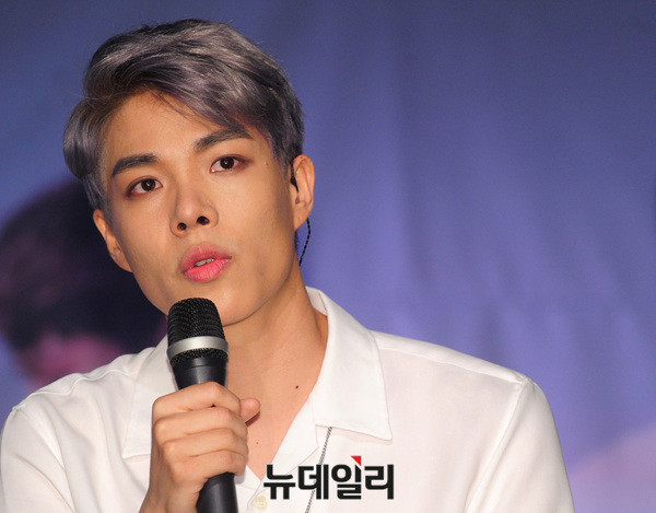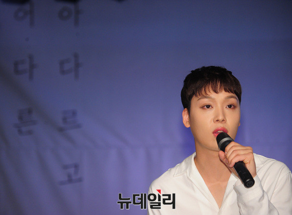 최지빈, 현우빈으로 구성된 듀오 빈블로우(BINBLOW)가 18일 오후 서울 마포구 홍대 롤링홀에서 열린 네 번째 싱글앨범 '아 다르고 어 다른' 발표기념 쇼케이스에 참석해 질문에 답하고 있다.