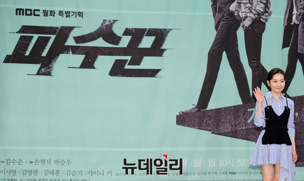 드라마 '파수꾼'에서 24시간 내내 집 안에 틀어박혀 CCTV로 대한민국 곳곳을 지켜보는 은둔형 외톨이 서보미 역을 맡은 배우 김슬기가 19일 오후 서울 상암MBC에서 열린 제작발표회에 참석해 질문에 답하고 있다.