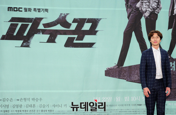 드라마 '파수꾼'에서 정의로운 열혈 검사 김은중 역을 맡은 배우 김태훈이 19일 오후 서울 상암MBC에서 열린 제작발표회에 참석해 포토타임을 갖고 있다.