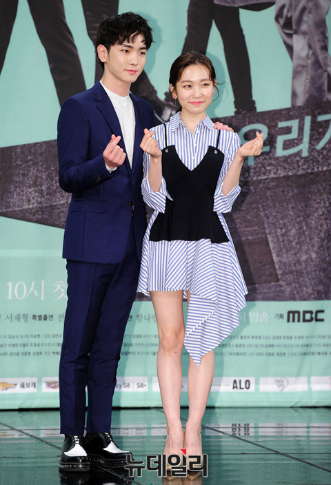 샤이니 키와 배우 김슬기가 19일 오후 서울 상암MBC에서 열린 드라마 '파수꾼' 제작발표회에 참석해 포토타임을 갖고 있다.
