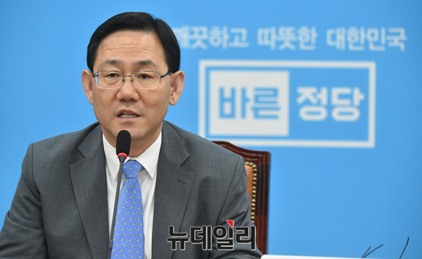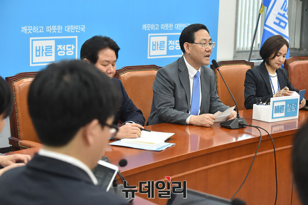 주호영 바른정당 대표 권한대행 겸 원내대표가 19일 오후 국회에서 문재인 대통령과 5당 원내대표 회동 결과를 설명하고 있다.