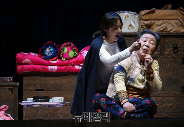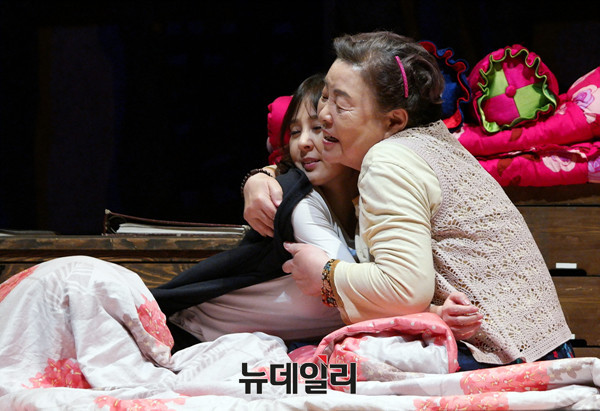 배우 강부자와 전미선이 19일 오후 서울 서초구 예술의전당 CJ 토월극장에서 열린 연극 '친정엄마와 2박3일' 프레스콜에서 열연하고 있다.