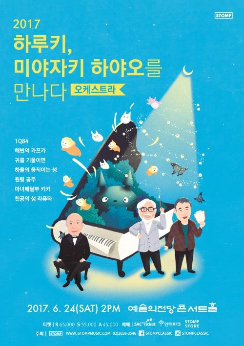 한국인이 사랑하는 일본 소설가 무라카미 하루키와 에니메이션 감독 미야자키 하야오의 두 감성이 만난다.클래식 렉처 콘서트 '2017 하루키, 미야자키 하야오를 만나다–오케스트라'가 6월 24일 오후 2시 예술의전당 콘서트홀에서 열린다.이번 콘서트에서는 떠오르는 신예 지휘자 안두현과 코리아 쿱 오케스트라가 참여해 일본 문화의 살아있는 역사가 된 두 아티스트의 이야기와 작품 속 익숙한 곡들을 들려준다.또, 지휘자 안두현의 친절한 해설과 함께 첼리스트 박고운, 바이올리니스트 김지윤, 2016년 프라하 봄 국제음악콩쿠르에서 한국인 최초 1위를 차지한 피아니스트 박진형 등 다채로운 솔리스트들의 협연으로 꾸며진다.1부는 하루키의 문학에서 빠질 수 없는 클래식 음악으로 그 문을 연다. '해변의 카프카', '1Q84' 등 소설 속에서 중요하게 다루는 음악적 장치를 막연히 글로만 느끼던 관객들에게 보다 직접적이면서도 감각적인 경험을 선사할 예정이다.2부에서는 하야오의 동반자라 할 수 있을 정도로 많은 작품을 함께한 작곡가 히사이시 조의 음악들을 중심으로 그의 인생과 작품세계를 들여다본다. '하울의 움직이는 성', '원령 공주', '이웃집 토토로' 등의 메인 테마곡들을 연주한다.'하루키, 미야자키 하야오를 만나다–오케스트라' 공연은 인터파크와 스톰프스토어에서 예매할 수 있다. 관람료 4만5천~6만5천원. 문의 02-2658-3546.[사진=스톰프뮤직]