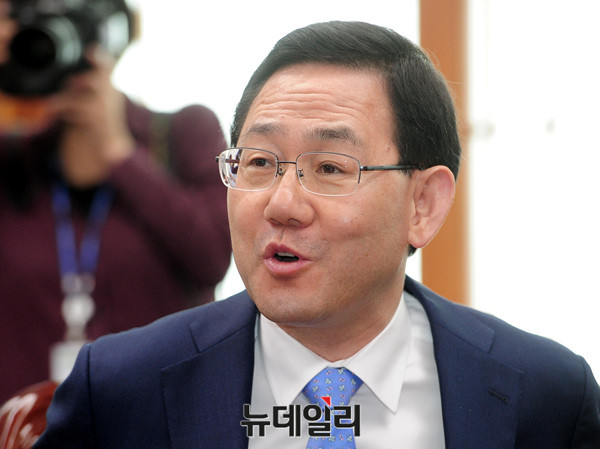 바른정당 주호영 당대표 권한대행 겸 원내대표가 22일 오전 국회의장실에서 열린 여야 4당 회동에 참석해 발언하고 있다.