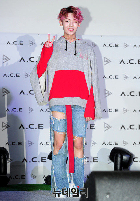 신인 그룹 '에이스(A.C.E : 준, 동훈, 와우, 제이슨, 찬)' 찬이 22일 오후 서울 강남구 KWAVE에서 열린 데뷔 첫 싱글 '선인장(CACTUS)' 발매 기념 쇼케이스에 참석해 포토타임을 갖고 있다.