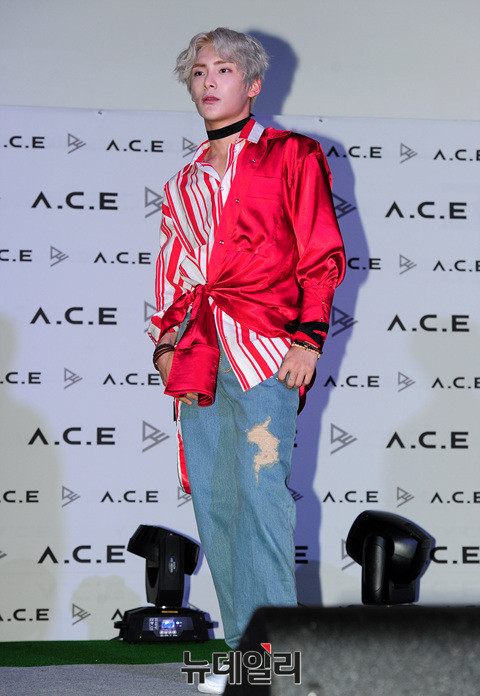신인 그룹 '에이스(A.C.E : 준, 동훈, 와우, 제이슨, 찬)' 준이 22일 오후 서울 강남구 KWAVE에서 열린 데뷔 첫 싱글 '선인장(CACTUS)' 발매 기념 쇼케이스에 참석해 포토타임을 갖고 있다.