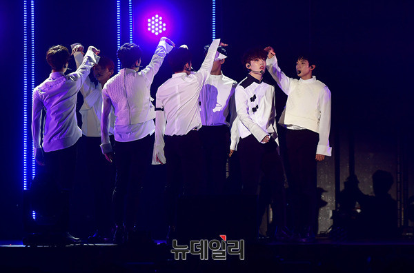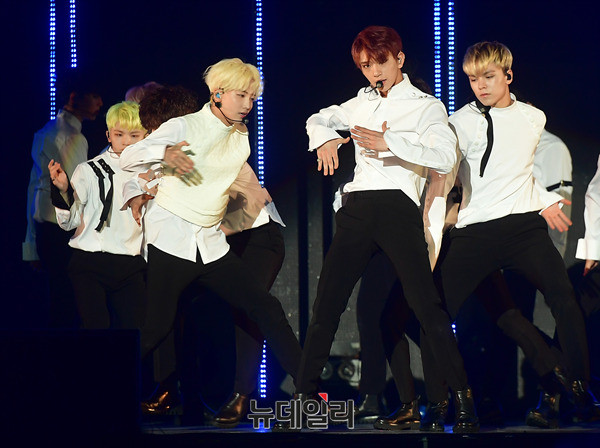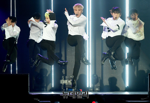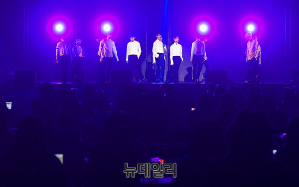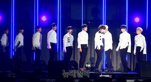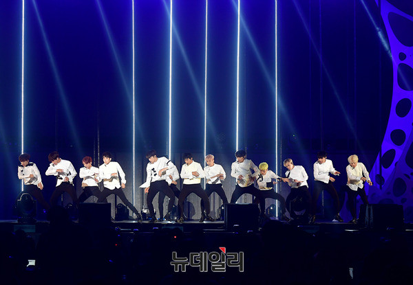 아이돌그룹 세븐틴이 23일 오후 서울 송파구 올림픽공원 올림픽홀에서 4번째 미니앨범 'Al1(알원)'의 타이틀곡 '울고 싶지 않아'를 열창하고 있다. 'Al1'은 세븐틴이 지난 2년여 동안 소년의 성장의 또 다른 단계를 담았다. '울고 싶지 않아'를 타이틀을 포함해 신곡 6곡이 수록됐다.