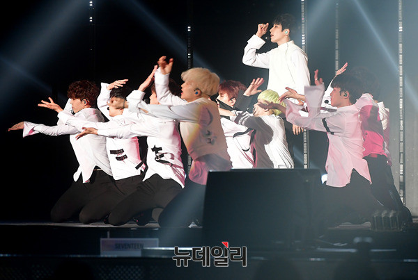 • 아이돌그룹 세븐틴이 23일 오후 서울 송파구 올림픽공원 올림픽홀에서 4번째 미니앨범 'Al1(알원)'의 타이틀곡 '울고 싶지 않아'를 열창하고 있다. 'Al1'은 세븐틴이 지난 2년여 동안 소년의 성장의 또 다른 단계를 담았다. '울고 싶지 않아'를 타이틀을 포함해 신곡 6곡이 수록됐다.