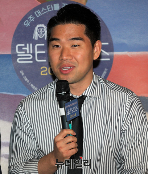 배우 김충길이 23일 오후 서울 성동구 CGV왕십리에서 열린 영화 '델타보이즈' 언론시사회에 참석해 포토타임을 갖고 있다.