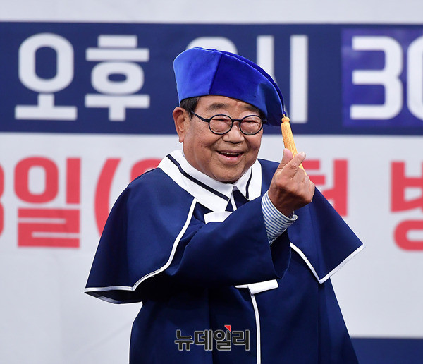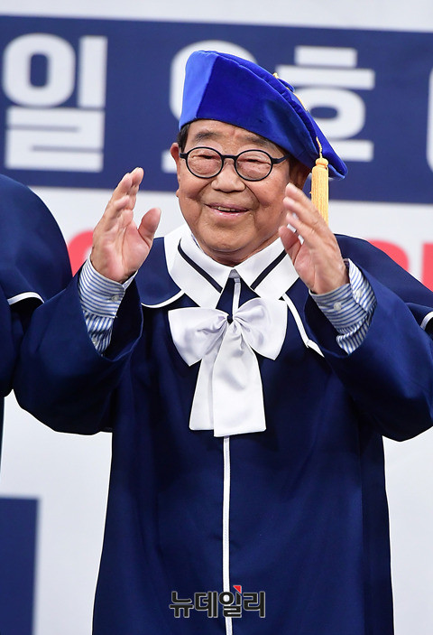 방송인 송해가 24일 오후 서울 마포구 상암MBC 골든마우스홀에서 열린 '세모방(세상의모든방송)' 제작보고회에서 포토타임을 갖고 있다.