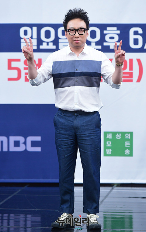 방송인 박명수가 24일 오후 서울 마포구 상암MBC 골든마우스홀에서 열린 '세모방(세상의모든방송)' 제작보고회에서 포토타임을 갖고 있다.