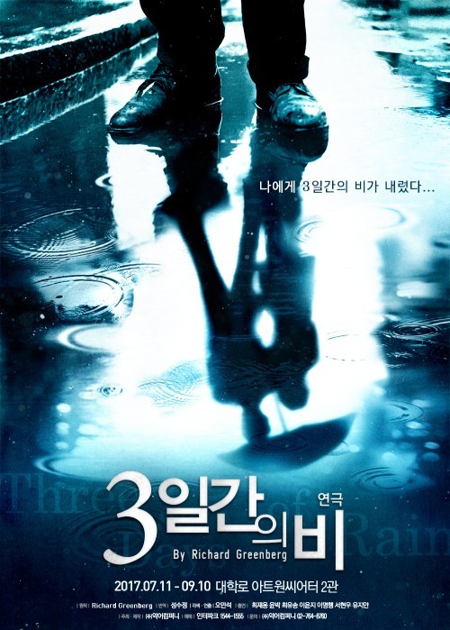 오는 7월 초연을 앞둔 연극 '3일간의 비(원제 Three days of Rain)' 티저포스터가 공개됐다.2003년 토니상 수상자인 미국의 극작가 리차드 그린버그의 작품인 '3일간의 비'는 1995년과 1960년대의 다른 두 시대적 배경을 바탕으로 우연히 발견한 '일기장'을 통해 과거의 진실을 들여다 보는 서정적인 연극이다.공개된 포스터는 짙은 청록색의 비 내리는 거리를 배경으로 홀로 서 있는 한 남자의 다리가 빈티지한 감성을 물씬 풍긴다. 남자의 모습은 왠지 모를 쓸쓸함을 담고 있는데, 이와 대조적으로 빗물에 비친 그림자는 우산을 쓴 두 남녀의 애틋한 모습으로 눈길을 끈다.또, 포스터에 기재된 '나에게 3일간의 비가 내렸다…'라는 카피가 이미지와 함께 어우러지며 세 남녀에게 3일간 과연 어떤 일이 벌어졌을지 전체 이야기에 대한 궁금증과 함께 기대감을 자아낸다.연극 '3일간의 비'는 배우 오만석이 연출을 맡으며, 탄탄한 연기력을 지닌 실력파 배우 최재웅, 윤박, 최유송, 이윤지, 이명행, 서현우가 캐스팅돼 현재와 과거의 캐릭터를 모두 1인2역으로 소화한다.7월 11일 9월 10일까지 대학로 아트원씨어터 2관에서 공연되며, 프리뷰 티켓 오픈은 6월 8일 오전 11시 인터파크에서 진행될 예정이다. 프리뷰 공연은 7월 11~7월 14일 총 4회차이다. 관람료 4만~5만5천원. 문의 02-764-8760.[사진=악어컴퍼니]