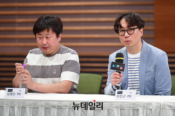 김명진, 최민근 감독이 24일 오후 서울 마포구 상암MBC 골든마우스홀에서 열린 '세모방(세상의모든방송)' 제작보고회에서 프로그램을 소개하고 있다.