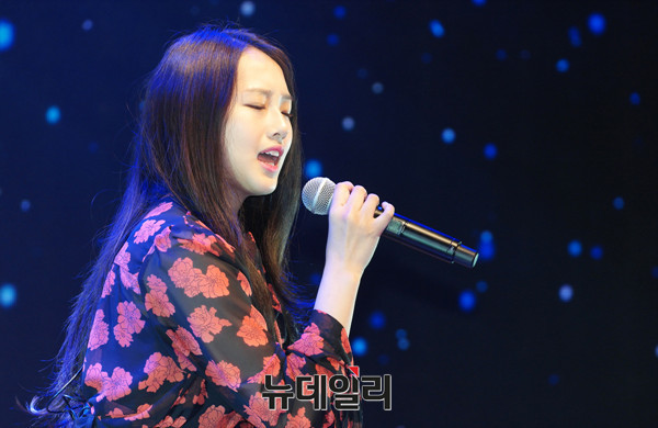 'K팝스타6' 출신 가수 크리샤츄가 24일 오후 서울 강남구 일지아트홀에서 열린 '크리샤츄 첫 번째 싱글앨범(Kriesha Chu 1st Single Album)' 쇼케이스에서 무대를 선보이고 있다.