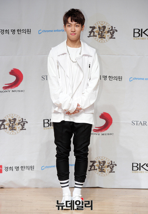 비에이(Be.A : 홍규, 영균, 밀리, 아토, 범)' 범이 25일 오전 서울 강남구 일지아트홀에서 열린 데뷔 첫 싱글 '매지컬리얼리즘(Magical realism)' 발매 기념 쇼케이스에 참석해 포토타임을 갖고 있다.