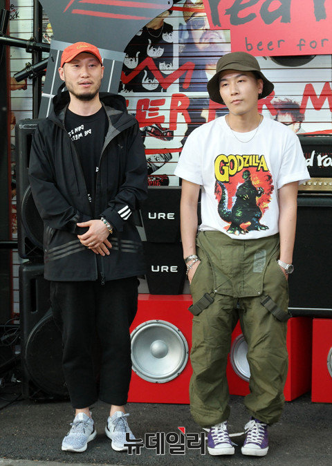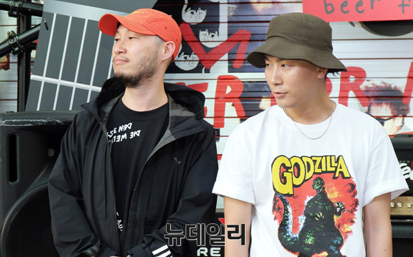 MC메타(왼쪽)와 DJ코난이 25일 오후 서울 마포구 레드락에서 열린 라이브클럽 '하우스 오브 레드락' 런칭파티에 참석해 포즈를 취하고 있다.