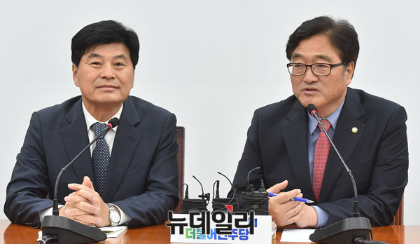 더불어민주당 우원식 원내대표가 26일 오전 국회를 찾은 이춘희 세종특별자치시장과 회동을 갖고 있다.