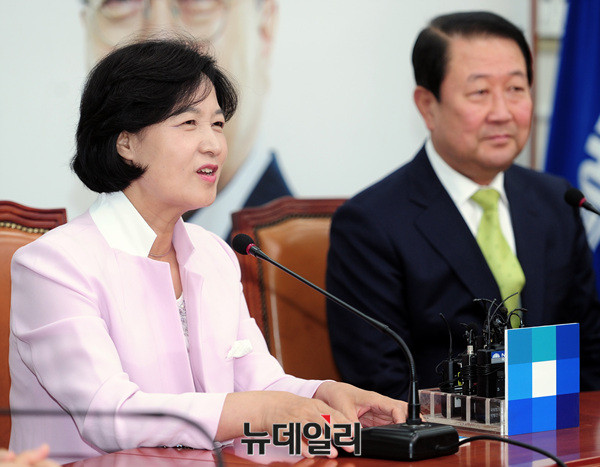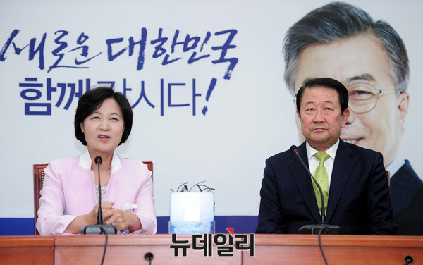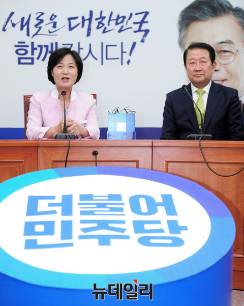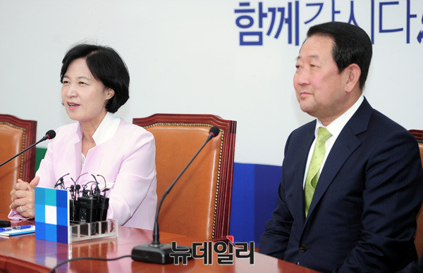 추미애 더불어민주당 대표가 26일 오전 국회 당대표실에서 박주선 국민의당 비상대책위원장과 만나 발언하고 있다.