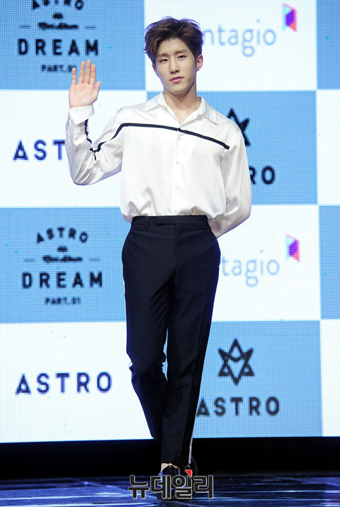그룹 아스트로(ASTRO : 차은우, 문빈, MJ, 진진, 라키, 윤산하) 진진이 26일 오후 서울 강남구 SAC아트센터에서 열린 네 번째 미니앨범 '드림파트1(Dream Part.01)' 발매 기념 쇼케이스에 참석해 포토타임을 갖고 있다.