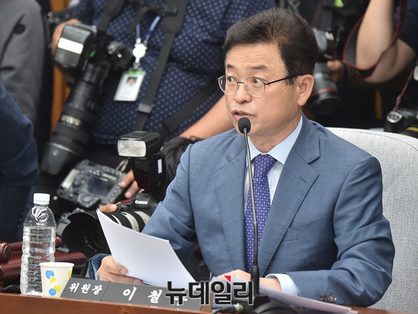 이철수 국회 정보위원장이 29일 오전 국회에서 열린 서훈 국가정보원장 인사청문회에서 의사진행을 하고 있다.
